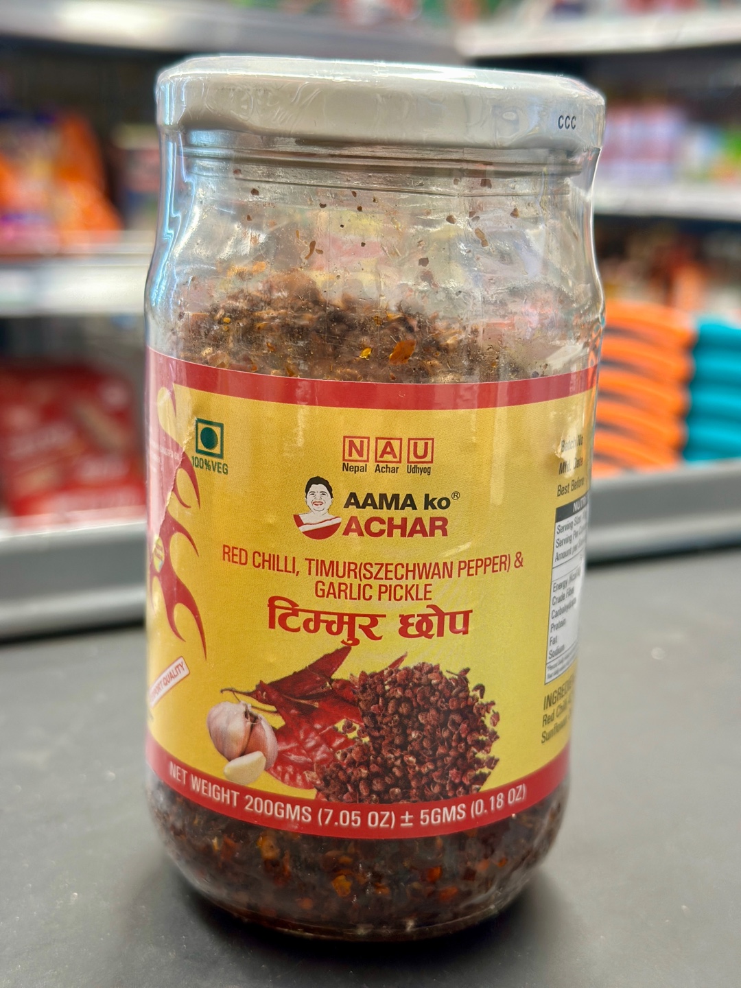 200g aama ko achar brand timur choop ( red chilli timur , and garlic piclkle)